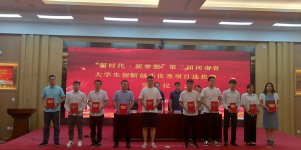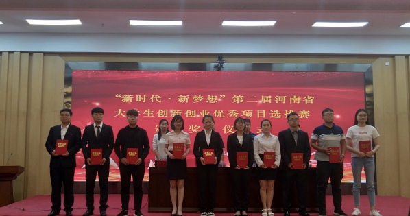 我校“新时代新梦想”第二届河南省大学生创新创业优秀项目上台领奖