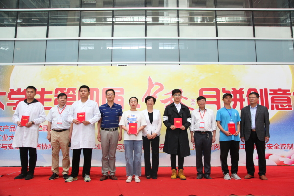 我校副校长王新杰、河南省农产品加工与贮藏工程学会会长吴坤和有关部门负责人出席颁奖仪式并为获奖学生代表颁奖。