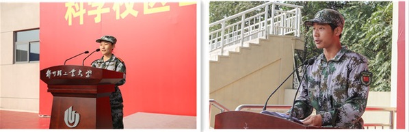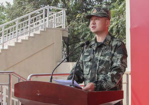 承训部队首长、中国人民解放军某部黄振超同志代表承训部队发言,他祝贺同学们圆满完成了军训任务,希望同学们保持和发扬学到的中国军人好作风、好品质,努力学习科学文化知识,把自己锻造成为德智体美全面发展、符合国家和社会需要的优秀人才。