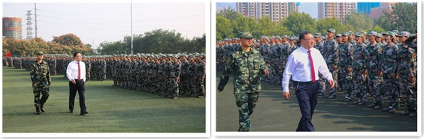 党委书记俞海洛在承训部队首长的陪同下分别在两校区检阅了新生军训方队。