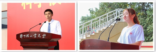经济与管理学院石嘉成同学、艺术设计学院2017级研究生王倩同学作为在校生代表发言,与广大新生分享了各自在轻工大学习成长的经验和体会,倡议新同学秉承“为之则易 不为则难”的校训精神,创造属于自己的精彩未来。