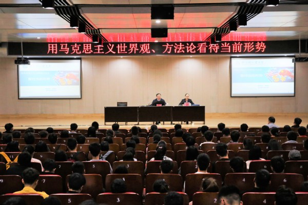 报告中,俞书记结合自身学习成效和调研成果,以“中美贸易战”“香港局势”“叙利亚战争”“伊朗局势”等为切入点,以生动的图片、详实的数据解读了国内外热点问题,运用马克思主义世界观、方法论,多视角、多维度分析了当前国际国内形势,阐述了美国、俄罗斯等大国推行的对外战略的本质和思维逻辑,引导师生用历史的、辩证的、系统的思维方式看待和分析问题,深刻理解党和国家的方针政策和外交战略,准确把握我国发展新的历史方位。