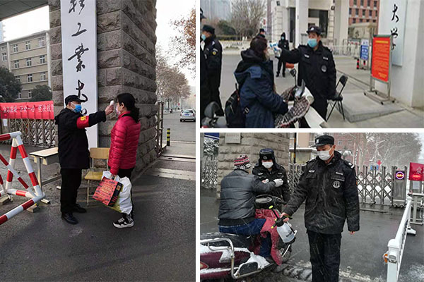 出台《关于严控校外人员和车辆入校的通知》《关于做好疫情防控期间校园安全管理的通知》,严禁在校学生提前返校,杜绝校外车辆人员进入校园,本校人员凭学校内部证件或一卡通进出,并自觉接受体温检查。目前,各校区均在校门外分开设置体温检测点和实名制登记区,由安保人员对出入校园人员进行体温检测和登记,对进入校园的内部车辆逐一进行消毒,特别是悬挂重点疫区车牌的车辆,全面排查车主信息和近期行程,并进行登记备案。