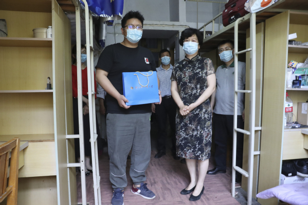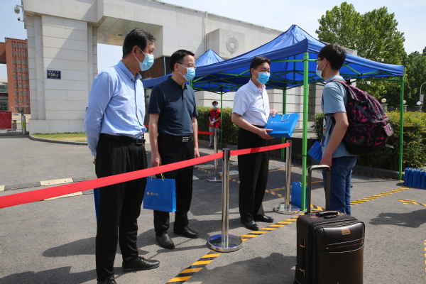 校领导来到校门口、学生宿舍等地点,与返校学生亲切交谈,详细了解返校过程,叮嘱同学们一定按照学校要求,毫不放松,做好个人疫情防控,以积极的心态面对生活和学习,并代表学校向学生赠送了疫情防控“爱心包”。校领导对师生志愿者们的辛苦付出表示感谢,要求大家要服从学校统一安排,在做好个人防护、完成学习任务的同时,发扬志愿者精神,积极参与各项服务工作。校领导要求各单位,要坚决贯彻上级和学校返校复学的有关要求和部署,把师生生命安全和身体健康放在第一位,积极为师生提供周到服务,安排好教学、管理、服务等各项工作,确保返校复学安全有序。