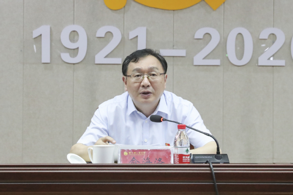 党委书记俞海洛讲话,他首先代表学校党委向全校师生党员致以节日的问候,向受表彰的先进集体和优秀个人表示热烈祝贺。他指出,一年来,学校党委坚持以习近平新时代中国特色社会主义思想为指导,认真落实立德树人根本任务,各项工作取得了可喜成绩。他回顾了我们党建党99年来的光辉历程,并结合学校实际,就全面落实新时代党的建设总要求,以高质量党建工作引领推动学校建设发展提出了明确要求。他强调,各级党组织和广大党员干部要不断加强学习,切实把学习成效体现到提高政治素养和思想境界上,体现到贯彻落实学校党委的决策部署上,体现到做好本职工作、提高治学办校的能力水平上;要始终保持奋发有为的进取精神,笃定发展初心、自觉担负发展使命,继续走以提高质量为核心的内涵式发展道路,推动学校各项事业不断迈上新台阶;要紧紧围绕学校中心任务,全力打好博士单位申报攻坚战,努力实现博士授权单位建设的重大突破,统筹做好硕士点申报、第五轮学科评估、一流本科专业申报和产业学院建设等重点工作,为推动学校事业取得新发展、新成绩打下基础。