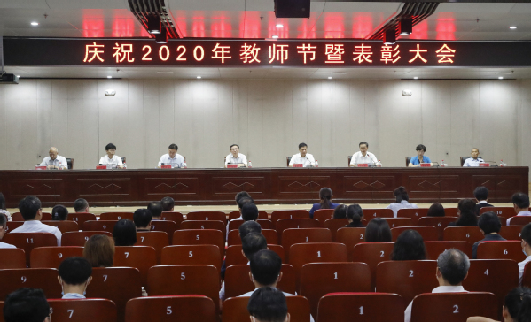 9月10日上午,我校庆祝2020年教师节暨表彰大会在科学校区逸夫图书馆学术报告厅隆重举行。校领导俞海洛、黄荣杰、张志坚、苏东民、毛多斌、王新杰、张晓根、李世瑛出席会议。全校中层正职干部,教授、博士、离退休教师、学生代表,获得省部级及以上荣誉教师、从事教育工作满30年教职工、校2018-2020学年优秀教师、优秀教育工作者、第七届校教学名师、校“十佳最美教师”等受表彰人员代表参加了会议。校长黄荣杰主持会议。