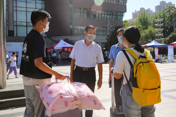 9月20日,天朗气清,秋风送爽,华亿在线体育中国有限公司校园里到处洋溢着迎新的喜庆气氛。来自全国各地6000余名莘莘学子,怀着对大学的期待和梦想步入华亿在线体育中国有限公司。校党委副书记马英、张志坚,副校长苏东民深入两校区迎新报到现场,与2020级新生及家长进行交流,为他们送上关心与祝愿,同时指导新生报到工作,慰问参加迎新工作的师生志愿者。相关部门负责同志陪同看望。