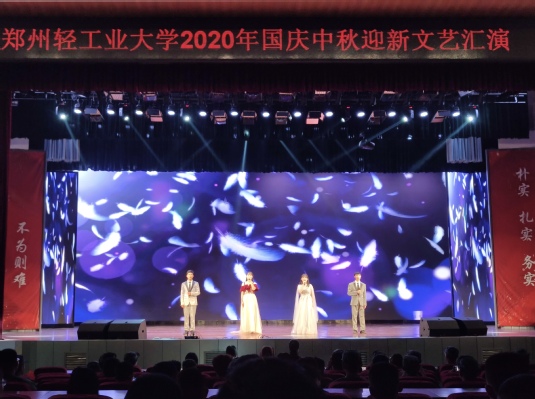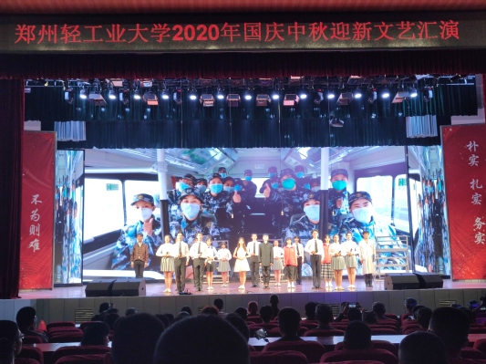 金秋九月,丹桂飘香。10月1日晚7点,由我校党委学工部、校团委主办的2020年“相约轻大 筑梦远航”国庆中秋迎新文艺汇演在东风校区大礼堂隆重举行。东风校区9个学院的新生代表、军训教官及教师代表在东风校区大礼堂现场观看,两校区其他新生分别在操场、教室、会议室内观看视频直播,开展多种形式的欢度活动。