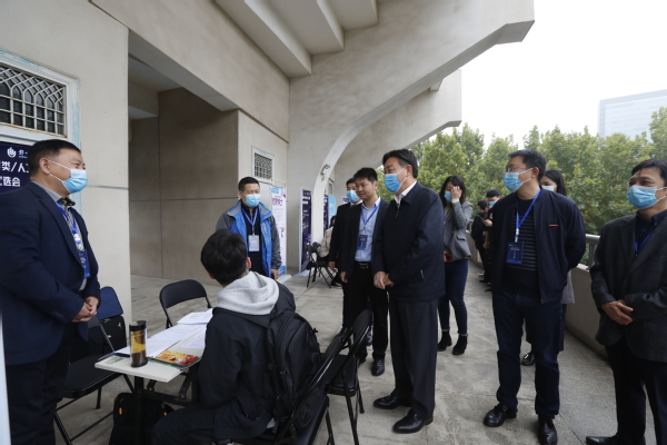 为进一步贯彻《河南省教育厅等十四部门关于联合开展河南省2020年高校毕业生“新时代·新梦想”就业创业公益帮扶行动的通知》文件精神,持续做好毕业生就业和招聘服务工作,扎实推进2021届毕业生高质量就业,10月15日,由省教育厅、省人社厅、省财政厅主办,我校和省大中专学生就业服务中心联合承办的河南省2020年IT技术类/人工智能类毕业生就业专场双选会在我校科学校区体育场成功举办。校党委副书记张志坚深入双选会现场指导工作。