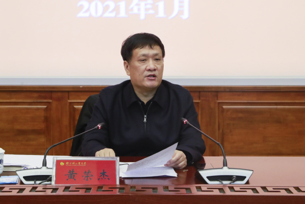 校长黄荣杰作总结讲话。他指出,这次会议既是一次动员会,也是一次部署会,主要目的是统一思想、凝聚共识、明确任务,齐心协力把学校“十四五”事业建设发展规划编制好,为学校“十四五”期间各项事业高质量发展奠定坚实基础。