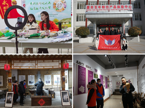 用好网络平台,助力乡村振兴。“河小二”志愿者化身网红直播,通过线上直播宣传等方式推介黄河流域特色农产品,打响黄河流域农产品特色品牌。为更好地助力乡村经济发展、推介地方特色农产品,志愿者们专程前往中国禹粉文化博物馆和盛田百年粉坊产品体验中心,实地了解淀粉和“禹粉”的发展历程以及与故宫的传奇故事,体验了从选红薯、洗红薯…兜粉蛋、晒粉子…浴粉、晒粉18道原汁原味、复杂且讲究制作工艺。最后通过网络直播展示“禹粉”等特色农产品魅力,以实际行动推动了黄河流域经济发展、助力乡村振兴。