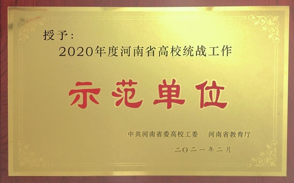 近日,中共河南省委高校工委、河南省教育厅印发《关于2020年河南省高校统战工作示范单位考核工作的情况通报》,学校被授予“2020年度河南省高校统战工作示范单位”称号。