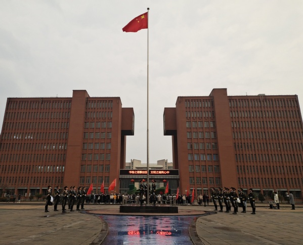 3月1日清晨,学校分别在科学校区主教楼广场、东风校区图书馆广场和禹州实习实训基地第二实训楼广场举行新学期升国旗主题教育活动,900余名师生代表参加了此次活动。