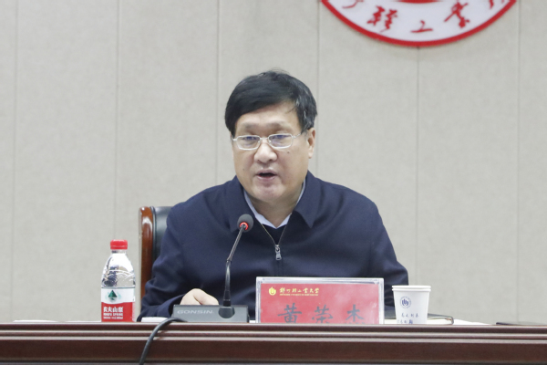 校长黄荣杰作总结讲话。黄校长充分肯定了我校2020年毕业生就业创业工作取得的成绩,对各单位全员行动、共克时艰,用心用情服务学生表示感谢。他分析研判了疫情常态化防控下大学生就业的形势,并对学校2021届毕业生就业工作进行了具体部署,明确提出三个要求:一是要准确把握新形势,贯彻落实习近平总书记关于加强就业工作的重要论述和2021年毕业生就业工作新要求;二是要统筹全局谋发展,打造全方位、全过程、全员就业育人新成效;三是要多措并举求突破,奋力开创2021年毕业生就业工作新局面。黄校长指出,各学院、各部门要深入学习贯彻落实党的十九届五中全会精神,按照教育部2021届高校毕业生就业创业工作会议部署和河南省工作要求,深入实施就业工作“一把手”工程,牢固树立全校就业工作“一盘棋”思想,全校上下密切配合、协调联动,进一步完善智慧化就业平台建设,拓宽校企、校地合作渠道,开拓就业岗位多元供给;用好就业创业教育平台,抓好精准就业帮扶,提升就业指导服务水平;关注就业全链条反馈,深化人才培养改革,保障高质量人才培养效果。