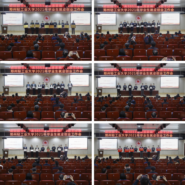 会议表彰了能源与动力工程学院、计算机与通信工程学院(电子信息工程学院)、政法学院、软件学院、材料与化学工程学院、电气信息工程学院、经济与管理学院、机电工程学院8个就业创业工作先进集体,马岭等25位就业创业工作先进个人,许春平等13位优秀创业导师,“厕所革命”再出发团队等9个优秀创业团队,刘贝贝等8位河南省大学生职业生涯规划大赛优秀指导教师。
