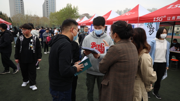 招聘会现场气氛热烈,秩序井然。疫情防控各项工作安排到位。展位前人头攒动,毕业生积极与用人单位沟通交流。为培养毕业生“胸怀国家之情,志在奉献青春”的爱国奋斗精神,学校还特别设立了两个就业指导专区,一是基层就业咨询专区,由校团委现场开展西部计划等基层就业政策咨询、推介等;二是入伍征兵咨询专区,由金水区征兵办、校武装部、退伍大学生现场作征兵政策讲解与宣传。两天累计咨询毕业生300余人次。见面会双选效果明显,27家参会单位会后组织了专场宣讲和面试,初步达成签约意向约1000余人。