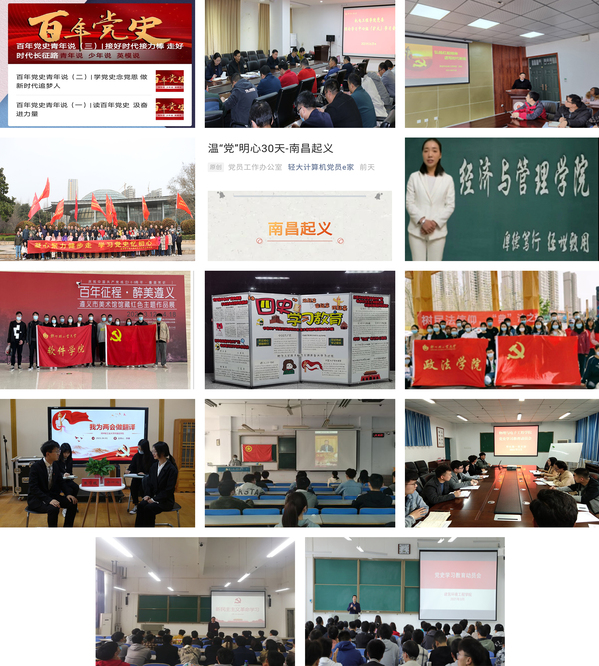 学工部(处)组织开展《全国大学生党史知识竞赛大会》线上答题活动,图书馆推出“建党百年 峥嵘岁月”21天打卡活动,电气信息工程学院开展“百年党史青年说”网络文化作品展演,机电工程学院开展党委理论学习中心组(扩大)集体学习会,食品与生物工程学院开展“百名党员讲述百年党史”活动,材料与化学工程学院在郑州市植物园开展“凝心聚力健步走,学习党史忆初心”主题党日活动,经济与管理学院开展了“党史青年说”党史宣讲活动,计算机与通信工程学院通过学院官方微信公众号开展了“读史明心30天”活动,软件学院在郑州市美术馆开展“学党史、强信念、跟党走”主题党日活动,国际教育学院开展“四史”学习教育主题党日活动,政法学院开展“学党史 办实事”普法宣传志愿服务活动,外国语学院开展“学党史 译两会”主题比赛活动,数学与信息科学学院开展“学党史,强信念,跟党走”系列主题团日活动,物理与电子工程学院开展党章党史应知应会知识竞赛和专题党课系列活动,能源与动力工程学院开展了学习《中国共产党简史》之新民主主义革命篇活动,建筑环境工程学院开展深化“党史”学习教育部署会。