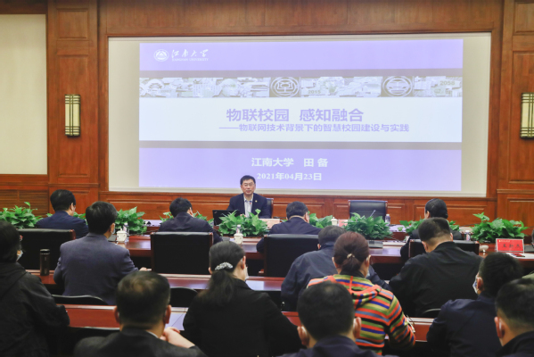 本次会议,我校特别邀请江南大学党委常委、副校长田备教授作关于“物联校园、感知融合”的专题报告。田备紧扣主题,介绍了江南大学的“理念先导、管理保障、技术支持”三位一体的ITM模式,并以智慧能源监管、智慧给水、智慧安全等系统的建设和融合为实例,详细阐述了江南大学运用物联网技术进行智慧校园建设的全过程。