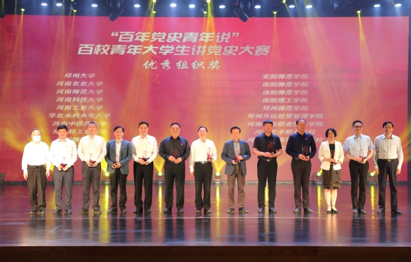 5月20日,由中共河南省委高校工委、河南省教育厅、共青团河南省委、河南广播电视台联合举办的“‘百年党史青年说’——百校大学生讲党史大赛颁奖典礼暨汇报展演活动”在郑州师范学院举办,由外国语学院师生自编自导自演的舞台剧《烈火中永生》从全省高校712件参赛作品中脱颖而出荣获一等奖,矫菲等老师荣获优秀指导教师奖,学校荣获优秀组织奖。省委宣传部常务副部长曾德亚、副部长尹书博,省教育厅党组成员、副厅长、一级巡视员刁玉华,省委高校工委专职委员何秀敏、共青团河南省委副书记李丽等出席活动并为获奖队伍颁奖。校党委副书记张志坚代表学校领取优秀组织奖,宣传部、团委、马克思主义学院负责同志参加了此次活动。《烈火中永生》与其他高校的九件作品进入现场展演,共同录制了一堂全省直播思政课,学校青年学生以集体或个人等形式收看了活动直播。