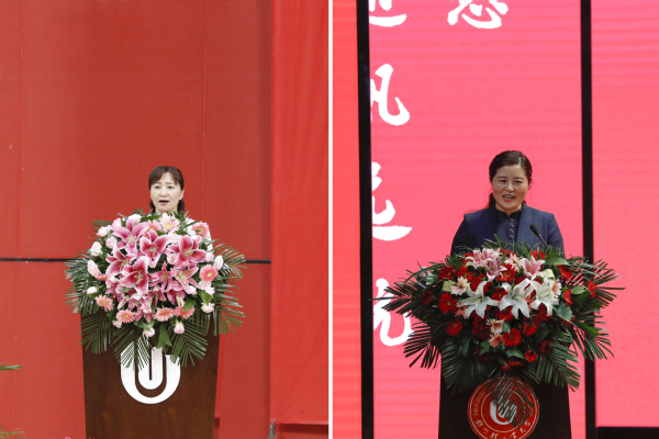 教师代表、毕业生代表、家长代表分别在典礼上发言。