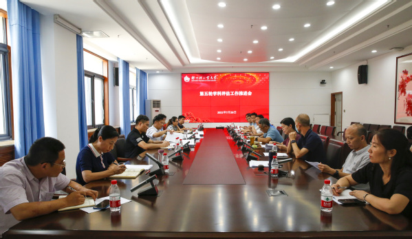 7月26日下午,学校在科学校区办公楼206会议室召开了学科评估工作推进会。校长黄荣杰出席会议,会议由副校长毛多斌主持,参评学科所属学院院长、主管学科副院长、学科建设办公室全体工作人员参加了会议。