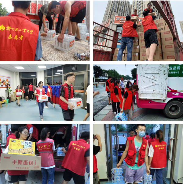 7月26日,公共事业管理2019级2班孙广宁在得知滑县卫河段的泄洪情况后,主动跟随实习单位志愿队到洪区抗南初中居民临时安置点搬卸、发放物资。公共事业管理2020班2班段欣然利用在家休假的时间连续一周给抗洪救灾工作人员做饭,做好抗洪救灾后勤服务。
