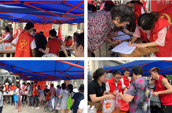 志愿者在社区发放救灾生活物资