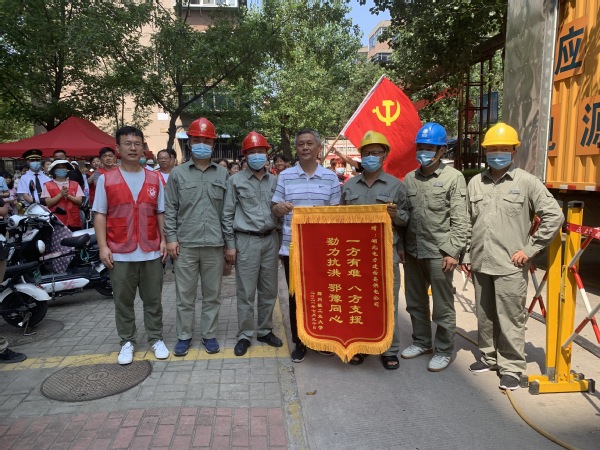 校领导代表学校为湖北广水市十里供电所救援队赠送锦旗