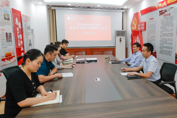 按照学校和机关党委党史学习教育工作安排,8月31日下午,党委办公室党支部召开党史学习教育专题组织生活会,校党委书记、校长黄荣杰以普通党员身份参加会议,俞海洛同志书面提交个人发言材料。