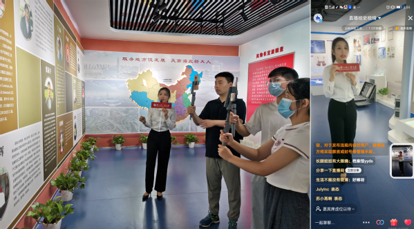 服务于学校特色成果展厅的校史讲解员同学落落大方、娓娓道来,向直播观众简要介绍了学校发展历程的主要事件、重要成就等校史资料,一一讲解了近年来学校在人才培养、科学研究、校企合作、创新创业等方面的主要成果,并回答了新生关于专业建设、校园生活等方面的提问。直播讲解进一步加深了广大新生对于学校办学特色和轻大精神的理解,增强了其作为“新轻大人”的荣誉感和自豪感。