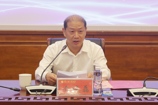 河南农业大学校长介晓磊发表致辞。他表示,数智化企业经营沙盘大赛已成功举办十六届,河南农业大学与兄弟高校一样,对此项大赛高度重视,多次组织学生参赛,并取得了较好成绩。他指出,沙盘比赛能够连续举办17届且热度不减,一个重要原因就是将理论与实践融为一体,让同学们切身体会到角色扮演与岗位体验的趣味性和实操性。他强调,河南农业大学将更加注重培养学生的创新性、批判性思维,以赛促建,进一步修订完善人才培养方案,深化教育教学改革,优化人才培养模式,着力培养更多创新型、复合型、应用型人才。