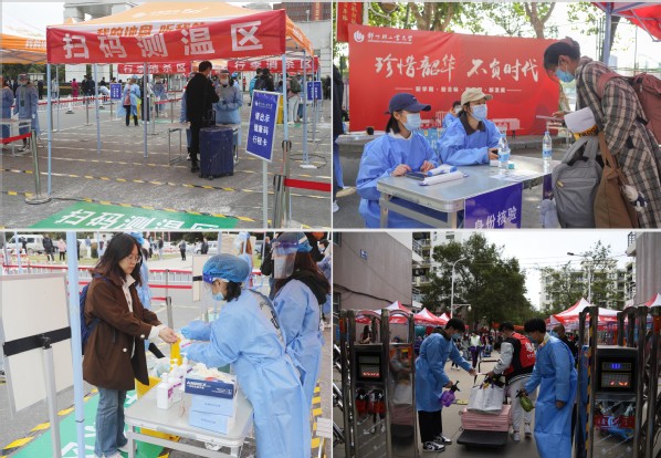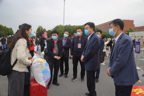 新生入校报到当天,校党委副书记张志坚,副校长苏东民深入两校区迎新工作现场,看望慰问2021级报到新生,实地检查迎新及疫情防控等工作落实情况。校领导在校门疫情防控点、核酸检测采样现场,指导新生报到工作,亲切慰问迎新工作及疫情防控一线的师生志愿者,对工作人员坚守岗位、担当作为的奉献精神给予了充分的肯定。