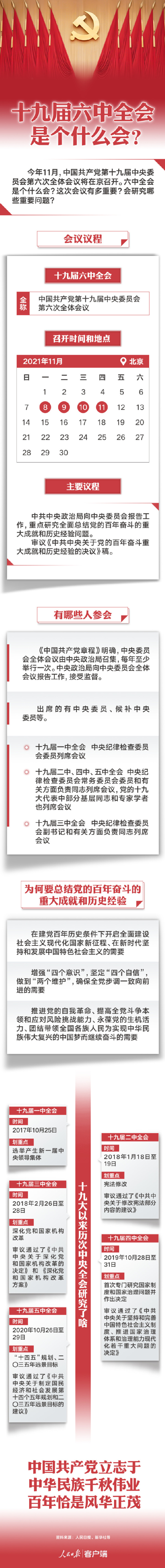 今年11月,中国共产党第十九届中央委员会第六次全体会议将在京召开。六中全会是个什么会?这次会议有多重要?会研究哪些重要问题?