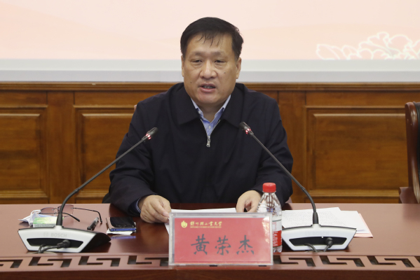校党委书记、校长黄荣杰讲话。他首先对新入职教师加入学校大家庭表示欢迎。他指出,新入职教师是学校教师队伍的新鲜血液,也是学校事业不断取得进步的根本保障。他强调,新入职教师要准确把握高等教育发展的新形势新要求,充分认识高水平师资队伍建设的重要意义,切实增强立德树人的责任感和使命感。他勉励新入职教师,要把高尚的师德师风作为为师从教的第一标准,要把过硬的专业能力作为教书育人的丹田底气,要把服务国家战略作为事业发展的重要目标。他希望新入职教师认真学习贯彻党的十九届六中全会精神,秉承“为之则易、不为则难”的校训精神,潜心教书育人,勇攀学术高峰,为建设高水平轻工业大学贡献力量。