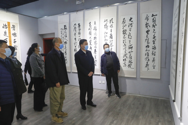为庆祝中国共产党成立100周年,回顾党的光辉历程,讴歌党的丰功伟绩,继承和发扬党的优良传统,以实际行动学习贯彻党的十九届六中全会精神,由党委宣传部、纪委、工会、艺术设计学院主办,团委、艺术设计学院分工会、学校教工书画协会以及绘画系、雕塑系承办的“党在我心中”书法美术作品展于12月10日在东风校区艺术设计学院展厅开幕。