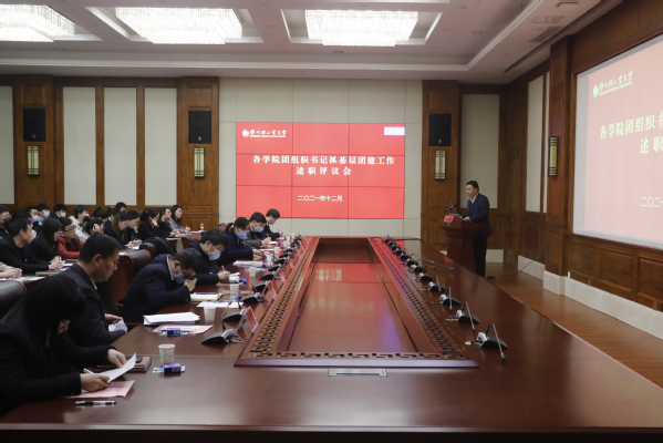 为贯彻落实党的十九届六中全会精神、省十一次党代会精神和省十五次团代会精神,进一步深化我校共青团改革创新,全面推进从严治团,科学考察各学院共青团工作实绩,12月30日,我校2021年度各学院团组织书记抓基层团建工作述职评议会在科学校区双创中心第一会议室召开。校党委副书记张志坚出席会议,有关职能部门负责同志、全校专职团干、团员青年代表参与本次述职评议。会议由校团委负责同志主持。