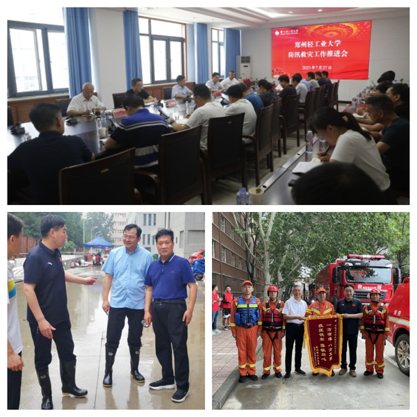 灾情就是命令!师生的生命财产安全就是最大的责任!全体校领导靠前指挥,冒着暴雨和洪涝灾情,紧急清查学生健康状况,紧急救援受灾受困群众。协调安徽滁州、中建七局等救援队支援排涝和临时供电,紧急排水5万余立方,抢修供水供电设备86件套,投入救灾资金860余万元。机关行政部门全员上岗,党员干部冲锋在前,校内志愿者、各学院师生紧急投入救灾清淤、物资装卸、信息统计、防疫宣传等工作,筑起了守护生命的“青春堤坝”,汇聚成强大的“轻大力量”。