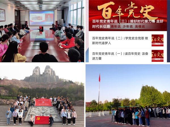 通过“党史+文创”“党史+诵读”“党史+竞赛”等形式,组织开展“学党史 强信念 跟党走”等主题党团日活动5724场,参与学生26万余人次。依托“全国大学生同上一堂‘四史’思政大课”“青年大学习”网上团课,引导学生学习75万人次,学习率达93.6%。推送“我把红色家书读给你听”45期,创作舞台剧《烈火中永生》获全省“百年党史青年说”一等奖。组织全校2.7万名学生参加全国大学生党史知识竞答大会、教育部“网上重走长征路”四史知识竞答、共青团中央“一起学党史”网上答题,河南省“100年党史100问”等各类知识竞答,人均答题320次,学校荣获全省“百年党史知识竞赛”本科组一等奖,连续四期上榜“一起学党史”全国100榜单”。在全省高校“学党史•强信念•铸师魂——我心中的思政老师”主题征文和全省优质网络思政微视频大赛,44篇作品获表彰奖励,学校获优秀组织奖。