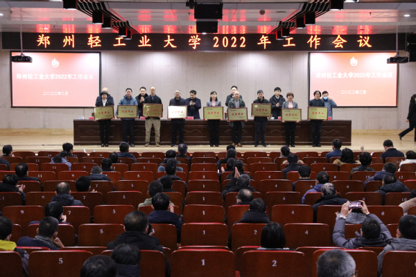 会上表彰了2021年度考核优秀、良好单位,副校长刘新田宣读表彰决定,校领导为考核优秀单位颁发了奖牌。
