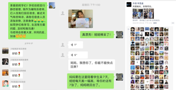 疫情全面封校,老师们配合学校安排工作,连夜离家到岗与同学们同吃同住。