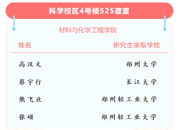 525寝室的四个人在生活中,有的人是班长,为同学们排忧解难;有的人是寝室长,督促每个人学习;有的人是协会部长,为社团做着自己的贡献。此外,他们在各个地方散发着自己的光与热。在宿舍内,他们兄弟齐心,其利断金,共同努力,成功上岸。