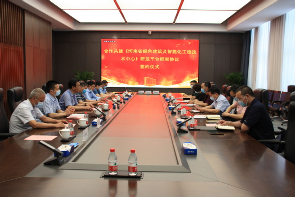 近日,学校与国机中兴工程咨询有限公司合作共建的《河南省绿色建筑及智能化工程技术中心》研发平台框架协议签约仪式在国机中兴工程咨询有限公司(以下简称“国机中兴”)成功举行。学校建筑环境工程学院党委书记刘吉彬一行与国机中兴党总支书记、执行董事李振文,党总支副书记、总经理王自振以及校企双方相关人员共同出席签约仪式并进行座谈交流。李振文主持仪式。