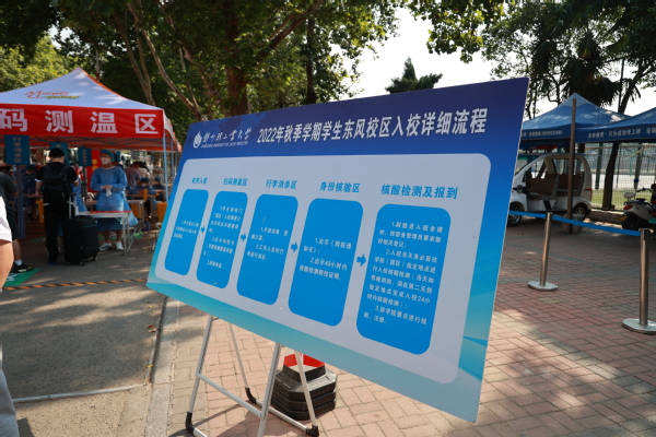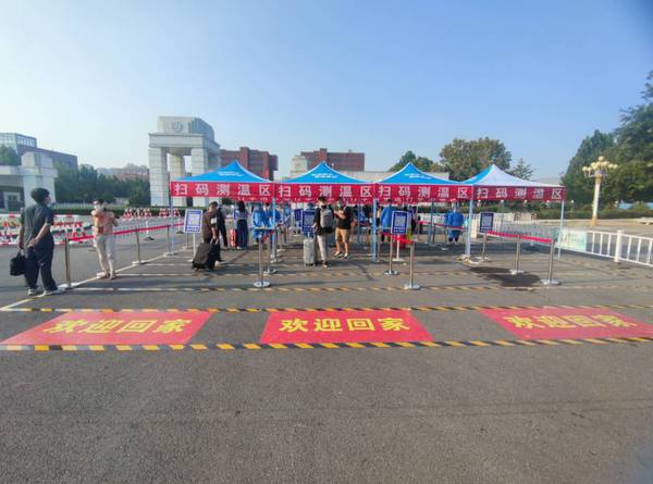 校门口、宿舍楼下、绿荫小道,无处不张贴着“欢迎同学平安返校”“新学期、新气象、新目标、新征程”等字样,夏去秋来,见证校园新样貌。