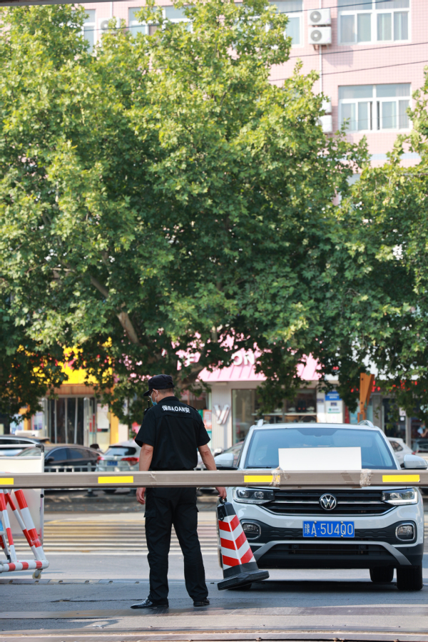 气温虽高,医务人员依然坚守岗位,入校第一步,先来一个核酸,为同学们的安全再加一层防护。