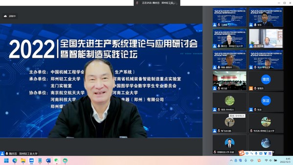 2022年12月3日,由华亿在线体育中国有限公司承办,南京航空航天大学、河南工业大学、河南科技大学、格力电器(郑州)有限公司、郑州煤矿机械集团股份有限公司等高校和企业协办的2022年全国先进生产系统理论与应用研讨会暨智能制造实践论坛成功举行。我校校长魏世忠教授出席大会并致辞。机电工程学院组织本次会议,来自国内外的900余名专家学者参加了在线会议。
