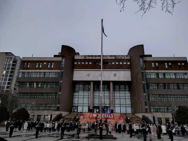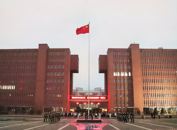 2月13日清晨,学校分别在科学校区主教楼广场、东风校区图书馆广场举行新学期升国旗主题教育活动,两校区500余名师生代表参加了此次活动。