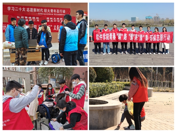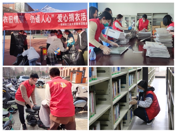 为积极倡导“奉献、友爱、互助、进步”的志愿服务精神,电气信息工程学院、机电工程学院、马克思主义学院、外国语学院、物理与电子工程学院、能源与动力工程学院组织学生志愿者,分别在实验室、图书馆、体育馆和校园内开展卫生清扫和环境美化志愿服务;材料与化学工程学院、青年志愿者协会在两校区开展了“衣旧情深,仍暖人心”爱心捐衣活动,用亲身实践传承雷锋精神,让学雷锋、树新风、做先锋蔚然成风。