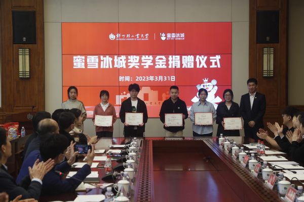 副校长王延峰为蜜雪冰城代表颁发捐赠证书