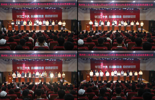 大会在嘹亮的国歌声中隆重开幕。党委组织部、党委学工部和党委研工部负责同志分别宣读了表彰文件,与会领导分别为获奖代表颁奖。学校五四红旗团委、河南省三好学生标兵、学校十佳共青团干部代表分别作典型发言,分享在奋斗中练就过硬本领的心路历程,展示轻大青年的青春风采,表达新时代广大青年勇担使命、强国有我的奋斗决心。