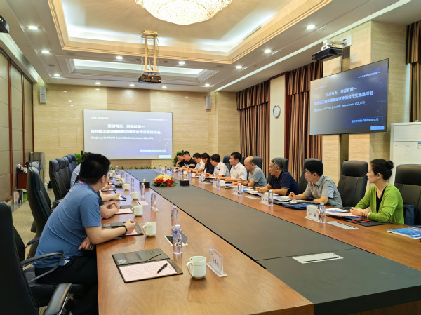 黄荣杰一行在中控科技园区实地参观了中控科技体验中心,随后,与浙江中控技术股份有限公司副总裁丁晓波、共享服务部副总经理钟云飞、华中大区河南区域经理李振国等等企方领导代表座谈交流,了解企业发展现状,听取企业和校友们的意见建议,并介绍了学校人才培养、学科建设、科研平台、学生招聘等情况。相关学院负责人介绍了学院发展情况及合作意向。
